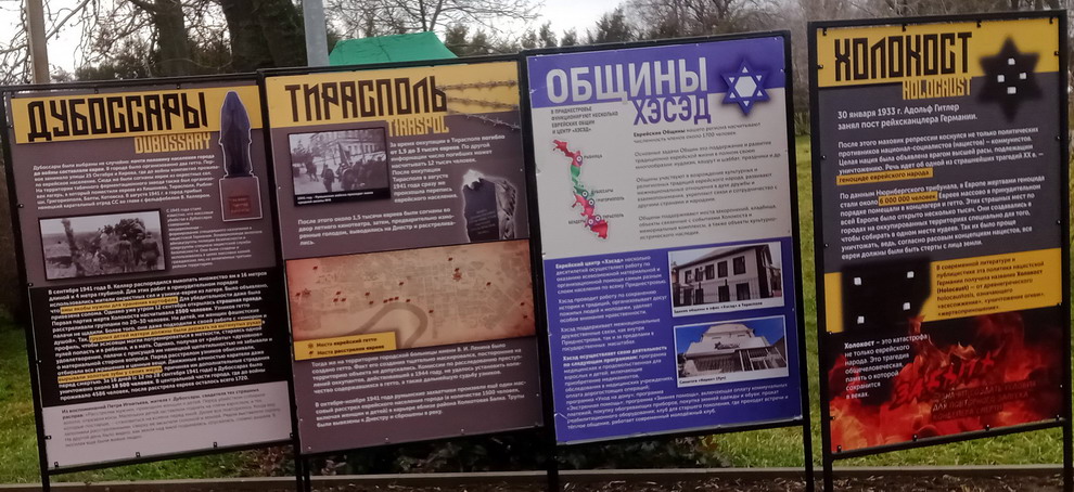 В годы фашистской оккупации на территории нынешних Приднестровья и Молдовы, в прилегающих областях Украины было создано более 250 гетто и концентрационных лагерей, в которых были зверски замучены и расстреляны более 600 тыс. евреев. В Бендерах расстрелы мирного населения велись во рву Бендерской крепости, в районе еврейского кладбища и в предместьях Кавказ и Протягайловка. Казни проводились и на берегу Днестра, а чтобы скрыть следы своего преступления, оккупанты сбрасывали трупы в реку. Бендерчане, которые эвакуировались, но по разным причинам задержались в пути, были застигнуты немецко-румынскими оккупантами и расстреляны в селе Ишеншаль Бендерского уезда.