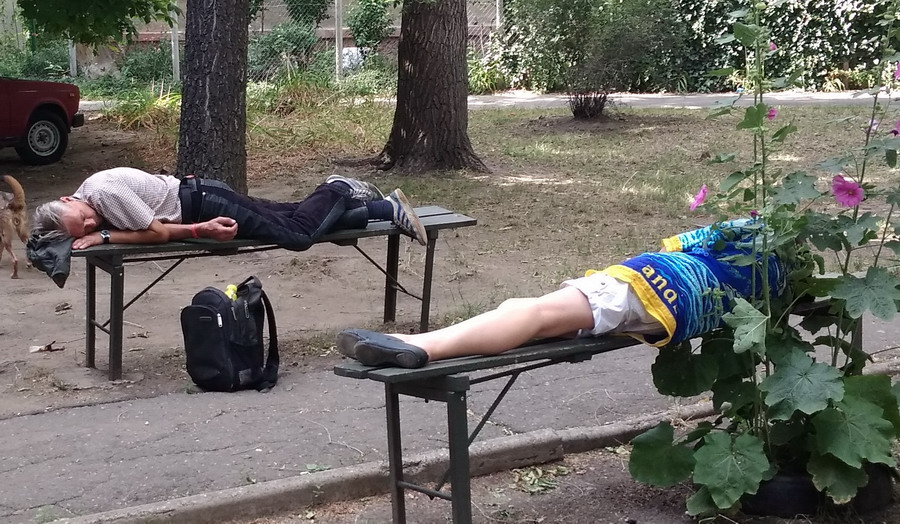 Обеденный отдых на лавочках. После вина или пива, или покрепче.
