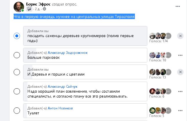 Опрос на фэйсбук группе "Приднестровье онлайн".