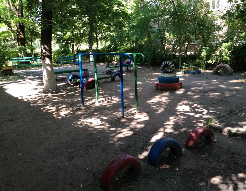 Детская площадка с шинами. Уродство? Или норма, если нет переработки автошин.