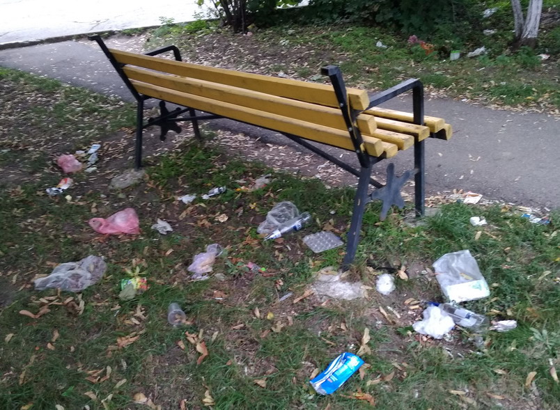 Тирасполь. Напротив домов Электромаша по Шевечнко, постоянно мусор у этих скамеек, нет мусорок. Причем так постоянно!