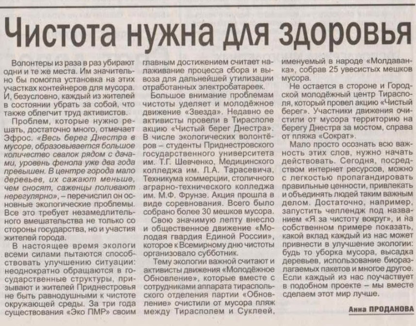 Статья про мусор на берегу Днестра и не только. Газета «Днестровская правда».