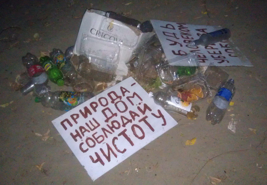 Вот вам и решение: 1. определить места отдыха людей 2. Обозначить их территориально и отделить от остальной природы 3. разработать систему контроля за отдыхом вне мест 4 разработать систему наказания за мусор в неположенных местах 5 оборудовать места мусорками, и мангалами 6 обеспечить регулярный вывоз мусора ......и ещё хрензнает сколько действий... чтоб обезопасить природу от людей. Может все таки пакетик с собой и если уже оказались далеко от мусорок, не полениться увести? )) Ирина: А еще у нас есть множество пятнадцатисуточников, приговоренных к общественным работам, безработных, стоящих на учете, которых можно привлекать к подобным работам та сказать "без отрыва от производства". Почему же опять студенты и школьники во главе с педагогами????? В чем проблема? Лично я - не мусорю, и вожу с собой пакеты. Но у нас есть большое количество людей, которых можно было бы задействовать для выполнения данных работ. В свое время Ф.Д. Рузвельт использовал армию безработных США для выполнения несложной работы для нужд государства, за минимальную оплату и горячий обед. Это давало возможность безработному не умереть от голода, а государству - решить свои проблемы по уборке территорий, расчистке лесов от сухостоя, и др. Просто автор заметки предложил в качестве бесплатной рабочей силы использовать студентов и школьников. Я показала, что есть альтернативные источники бесплатной рабочей силы. Ну а волонтеры, призывая сознательных граждан присоединиться к акции, по моему убеждению, не должны превращать добровольную акцию в добровольно-принудительную. Такая система, которую вы предлагаете, отлично зарекомендовала себя в России. На сегодняшний день за админ. нарушения есть штраф или «часы труда». И чудненько работает. Игорь:вот плакат летом висел напротив ПГТРК Тирасполь. Вот такой, и подобные должны висеть на въезде в города и не месяц или два - а на постоянной основе!!! У меня поэтому руки и опускаются: готовность волонтеров придти и убрать в любой момент лес, берег реки - воспринимается уродами как слабость и возможность мусорить еще больше (все равно придут "терпилы" и уберут). Только "публичные казни" с отловом этих свиней спасут ситуацию. Игорь:Все помогает , нада комплексно и "учить" - социальные ролики, акции по уборке, лекции и т.п. и штрафы. Но ни того ни другого у нас нет . Плакат повисел месяц и все - нада чтоб висел круглый год - годами - просто на въезде в города забетонировать по столбу со щитом - и повесить там по такой "картинке" , и не снимать эту картинку - выгорела - напечатать новую и опять повесить - и пусть висит. Борис: + мусорки нужны в лесу, и чтобы кто-то контролировал чистоту в лесу, ответственный был. Пару человек на ЗП - убирают мусор и могут штрафовать и будет всё чисто. Александр: Не пойму я вас ребята серьезно.Вернее понимаю прекрасно но..Есть Минсельхоз и ЭКОЛОГИЯ.они за что деньги получают.??Есть наконец милиция,которая в праздники (1 Мая,в маевки и в другие дни,) выборочно должна и обязана оповещать граждан через громкоговоритель о том что МУСОРИТЬ НЕЛЬЗЯ.Что наказывать будут жестко. То же самое касается и рыбаков.Подъехали.Спросил." А мусор гражданин после себя куда выбрасываете??Сорят не только тот ,кто отдыхает.Но и те кто рыбачит.Просто гуляют.Катаются с девочками по дамбам. То же самое касается и арендаторов полей.Очень часто вижу как из ле