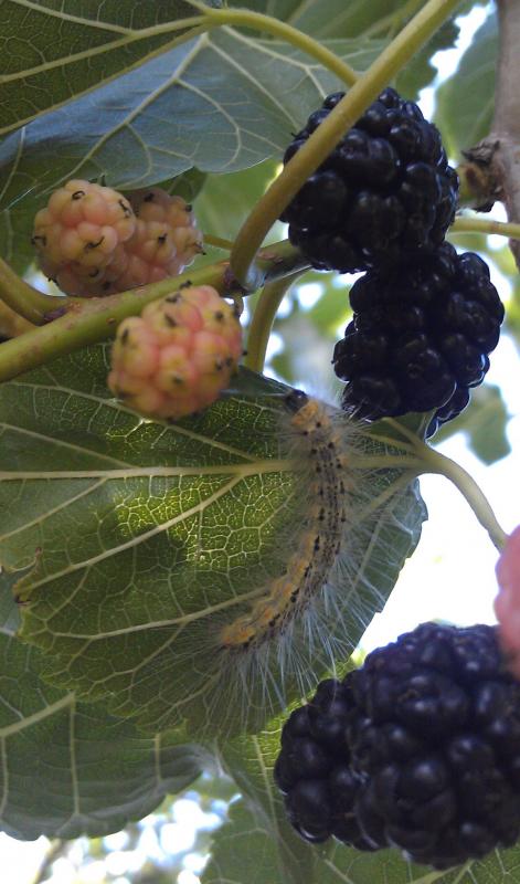 Макросъемка от Бори на мобильный телефон. Шелковица и гусеница.