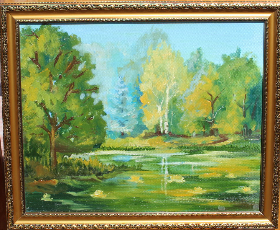 Гаврушева Ирина, 16 лет, "Озеро в лесу", масло.