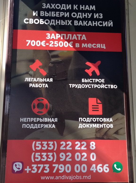 Объявление про работу в Европе на стене офиса в самом центре Тирасполя.