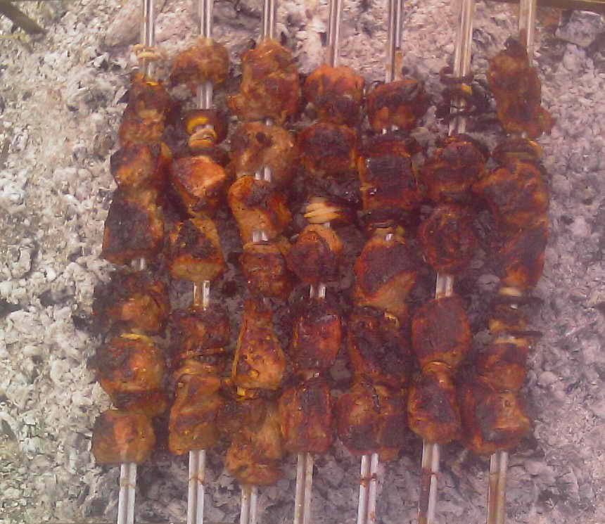 Чтобы шашлык был хороший .... Перед тем, как ставить на огонь нужно полить белком (от яйца ... желтка не нужно ).... премишаты .... Надеть на шомпол и на огонь ..... будет просто супер ....