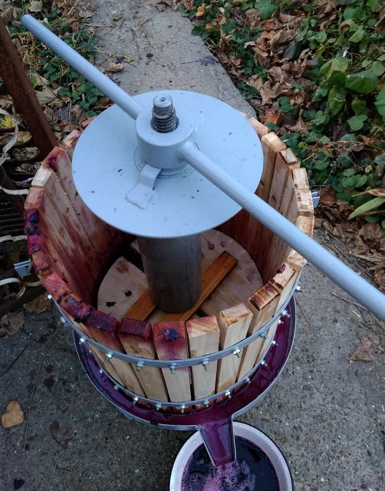 Купил я большой пресс для винограда, думал, у него конструкция как у малого на фото выше, не пригляделся... Набрал пару ведер молотого винограда, а пресс не достает до винограда ))