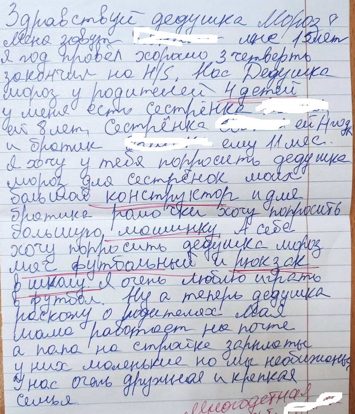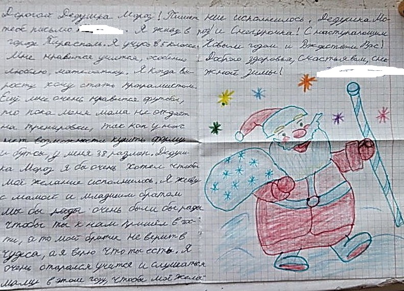 38. Суклея. Мальчику 15 лет - просит у Дед Мороза футбольный мяч и рюкзак в школу.