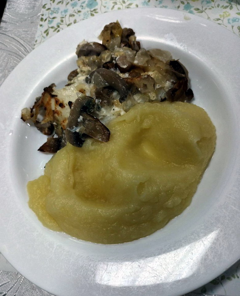 И такие котячьи порции, что я так понимаю - в этот санаторий надо ехать с полным чемоданом продуктов. Как можно вообще делать картофельное пюре без молока? И как это так, что ни одного кусочка мяса не плавает в тарелке с супом? Ставлю поварам минус! Цитата: