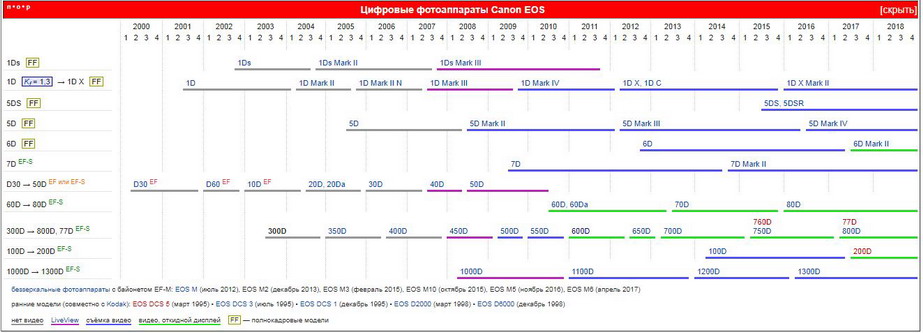 Таблица, как позиционируются зеркалки canon по моделям и годам. Вова спасибО!