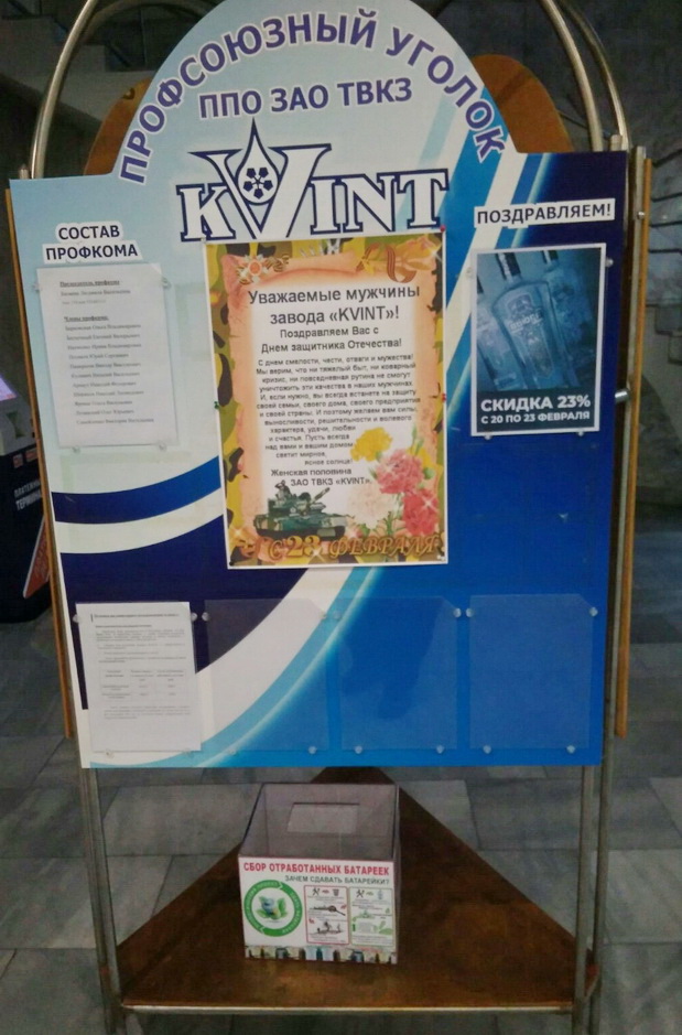 На проходной завода "KVINT" установлен сборник для отработанных батареек.