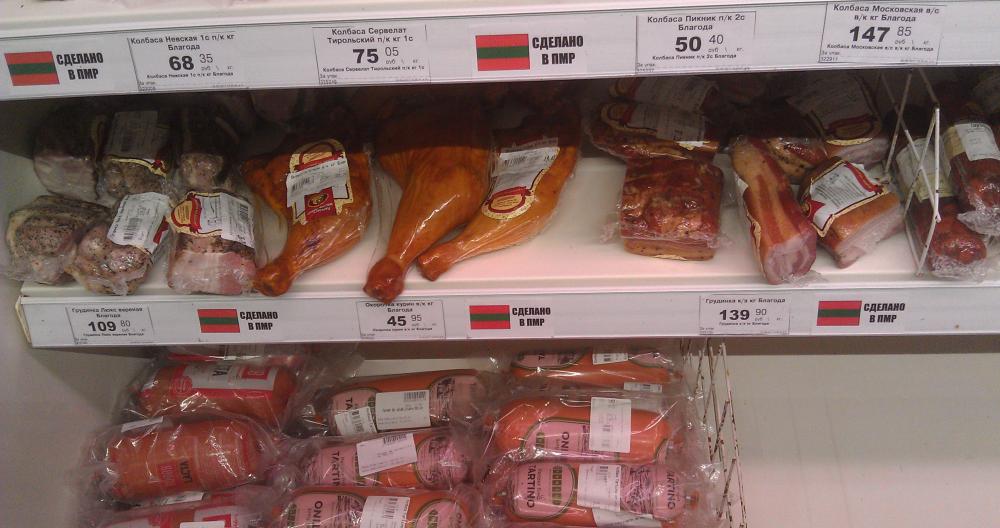 Еще комменты: Во первых, "made in" должно быть написано/приклеено на самом товаре. Во вторых, в любой себя уважающей, повторяю "себя уважающей" стране (тем более аграрной) товар местной пищевой промышленности так и так должен преобладать ну и последнее, на худой конец выделили бы "угол" с БОЛЬШОЙ такой надписью "Сделано в ПМР".