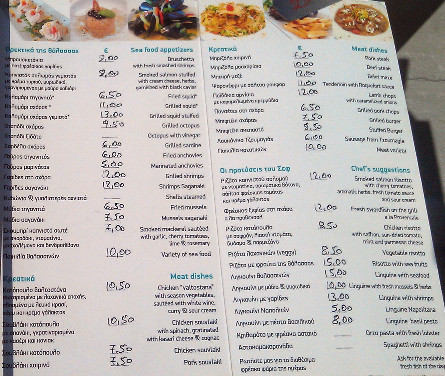 Вложение 23286 Цены в греческом кафе. Кто понимает, что в меню предлагается? )) Вложение 23455Вложение 23454 |