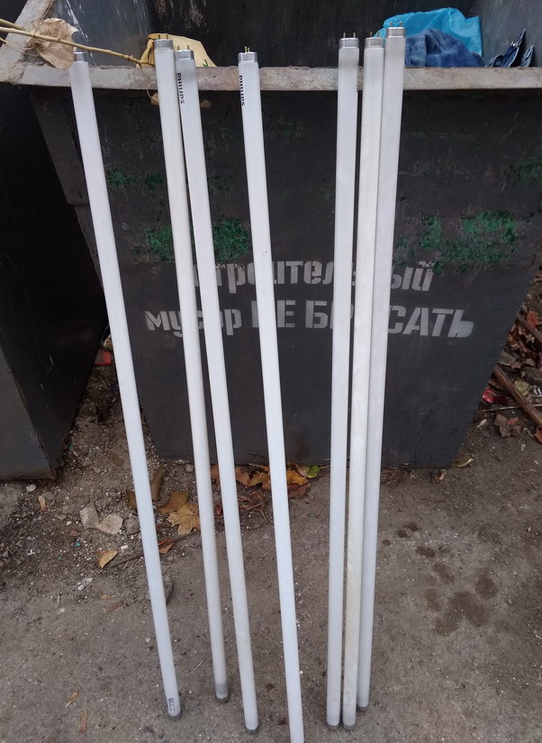 В центре Тирасполя лежало 13 ртутных ламп - я нашел на перекрестке хайтека и "диспута" у мусорок, Отнес в ЖЭК.