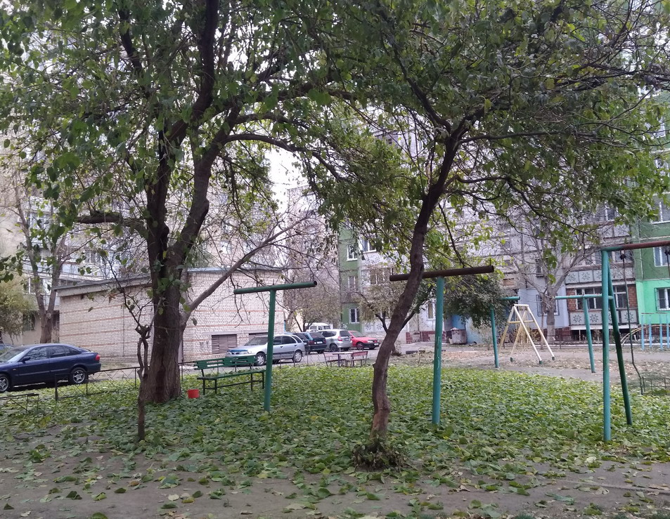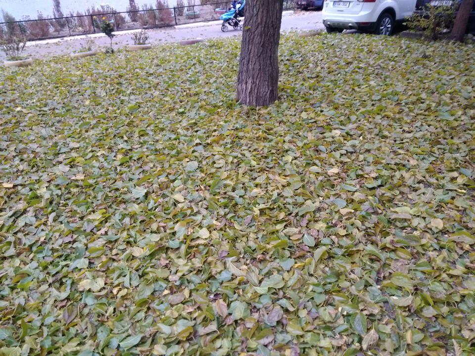 Первые заморозки, на некоторых деревьях была зеленая листва, так и опала.
