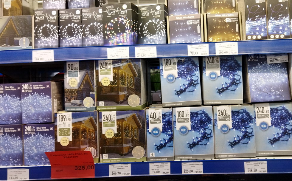 Сравниваем ценники на новогодние гирлянды в "5 карманов" - от 22.5 рублей, но на 110 Вольт.