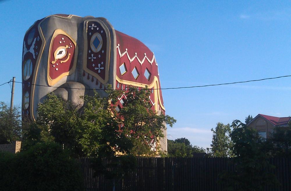 Прикольный дом-слон на трассе. Интересно, что у него в хоботе построили? Лифт или мусорку, или слив канализации? ))