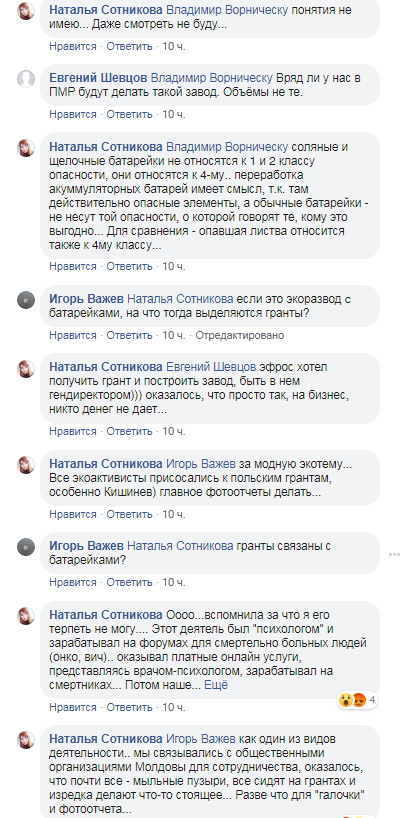 Сегодня прошел ежегодный конкурс "Человек года". В прошедший год, объявленный "Год экологии" мне показалось странным что обошли стороной наших волонтёров-активистов. Например все знают Бориса Эфроса, который носится по городу и бдительно следит за состоянием окружающей среды, собирает по всему Приднестровью отработанные батарейки. не давая отравлять землю, или Игоря Галдабина и Дмитрия Волосюка, которые занимаются тем же... Интересно, как вообще проходил отбор, расскажите, кто знает победителей? Уверен что люди достойные. Далее мне уже написали, что наша Наталья отжигает ))) **************youtu.be/watch?v=fr0IC8OtYrQ Цитата: