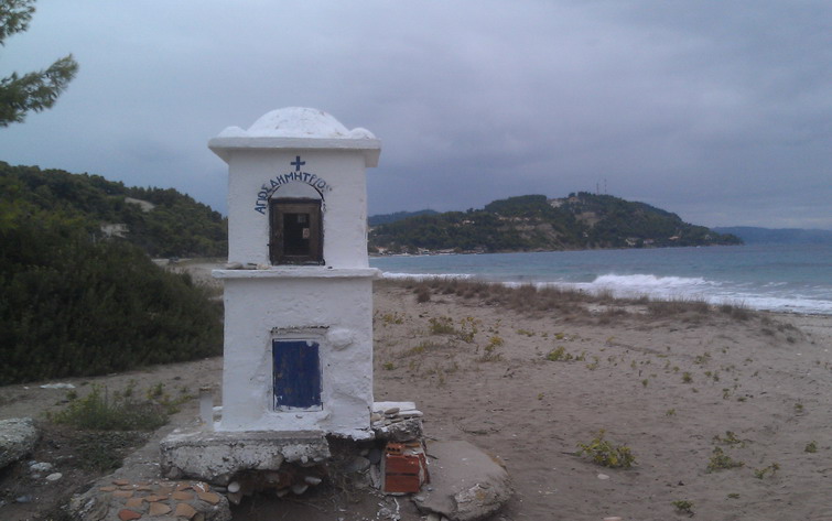 Церковь Панагия Корифини в городке Неа Мудания. Кстати, там всюду двухглавые орлы.