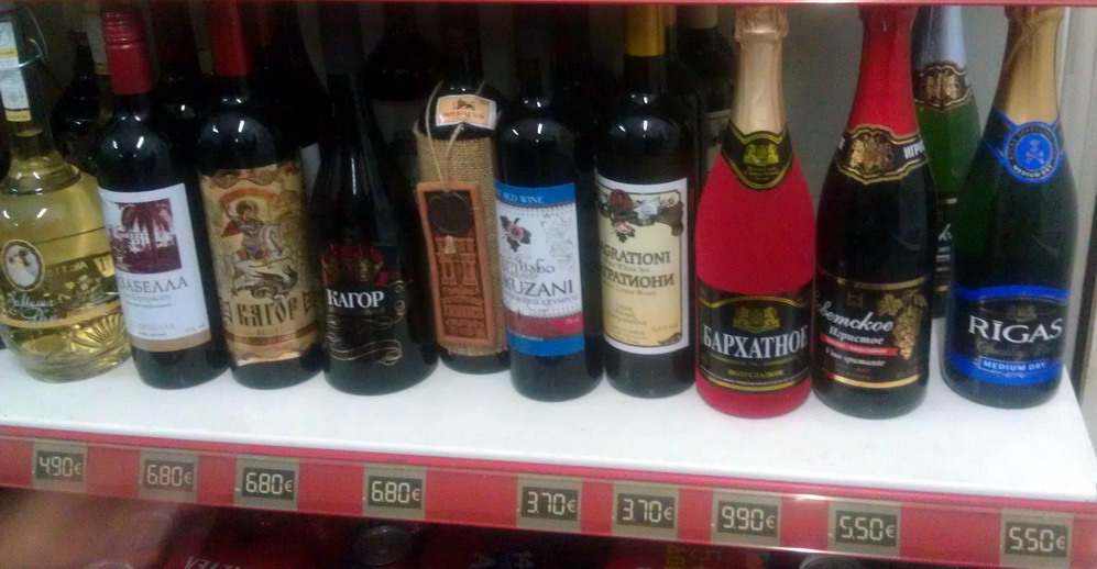 Продажа местного вина в магазинчике. Продавец спит, может уже выпил вина...