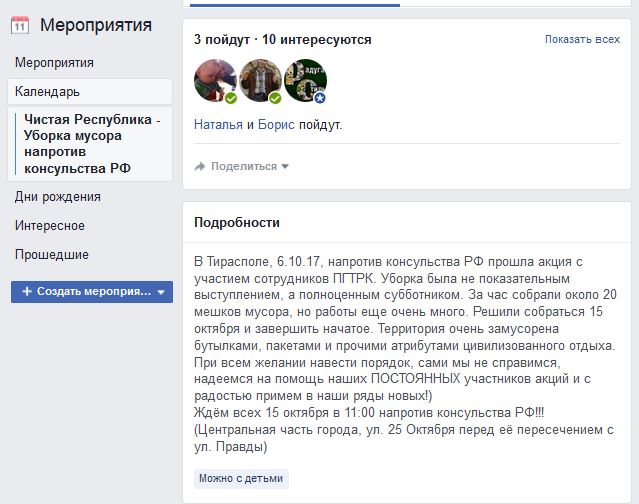 Гражданские активисты предлагают всем горожанам совместно ликвидировать мусорный завал напротив консульства РФ по улице 25 октября в Тирасполе Активисты общественной организации «Чистая Республика» объявили экологическую акцию по ликвидации стихийного мусорного завала за парапетом Семёновского бульвара напротив консульства РФ по улице 25 октября. Проявить гражданскую солидарность организаторы акции приглашают всех желающих 15 октября в 11.00. «При всем желании навести порядок сами мы не справимся, надеемся на помощь наших ПОСТОЯННЫХ участников акций и с радостью примем в наши ряды новых!»,- говорится в сообщении о мероприятии в Facebook. Вложение 23404 6 октября активисты «Чистой Республики» уже провели на этой территории экологический субботник. Здесь, в центре Тирасполя, было собрано несколько десятков пакетов с мусором, образовавшимся в результате пренебрежения горожанами и гостями столицы правилами утилизации бытовых отходов. «За час собрали около 20 мешков мусора, но работы еще очень много. Решили собраться 15 октября и завершить начатое. Территория очень замусорена бутылками, пакетами и прочими атрибутами цивилизованного отдыха», - пишут гражданские активисты на официальной странице общественной организации. |