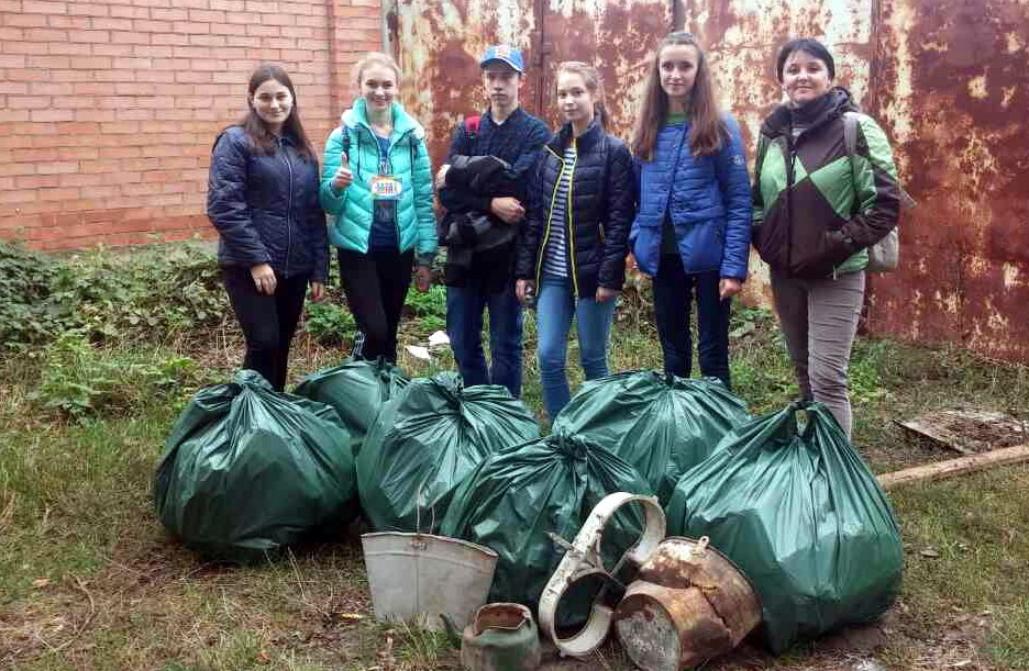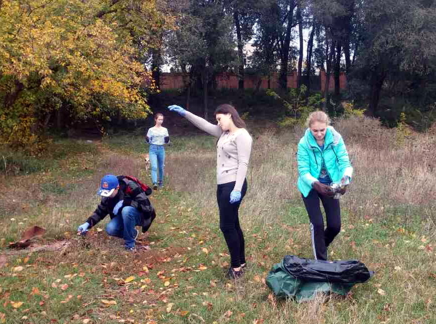 Уборка мусора у озера на совхозе в Тирасполе, школьники и преподаватели школы №3. Ребята и рядом с нами убирали у памятника электроста