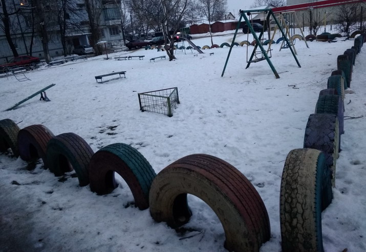 Очень понравилась детская площадка с покрышками от авто по периметру. Вот так можно немного утилизировать покрышки с пользой, делать ограды с них.