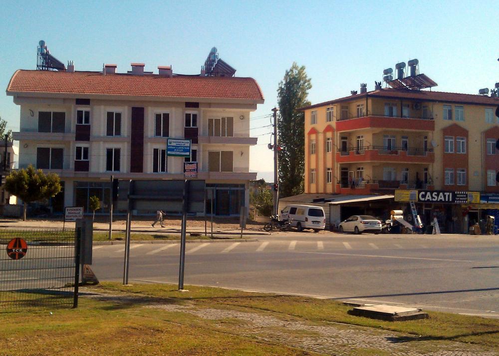 В почти трехчасовой дороге к Алании (мы были в в её пригороде) в основном видны такие типичные турецкие дома (почти на всех 3-5 этажных домах есть металлическая бочка для согрева воды солнцем) и довольно часто встречаются теплицы: