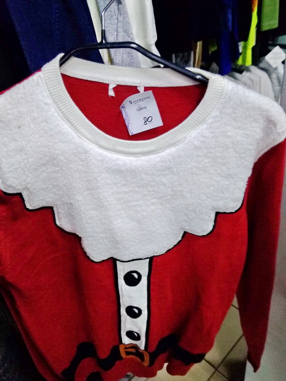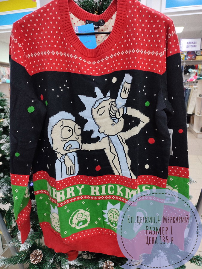 Смешной новогодний свитер, ради прикола можно было бы одеть на новогодний корпоратив.