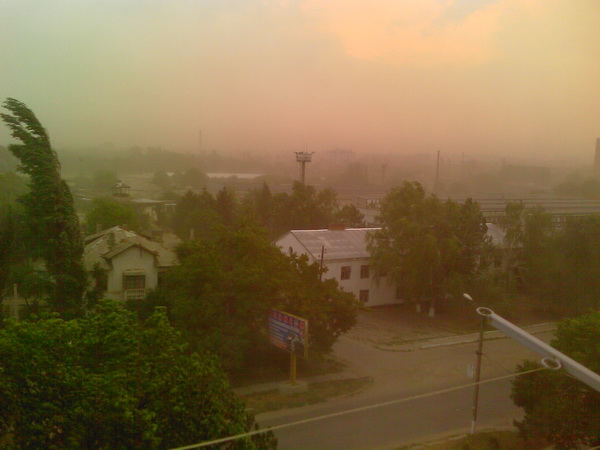 А из нашего окна - апокалипсис... На фото темно в далеке от песка и пыли. Над городом ветер нес тучи из пыли... А я то думал - дождь будет. |