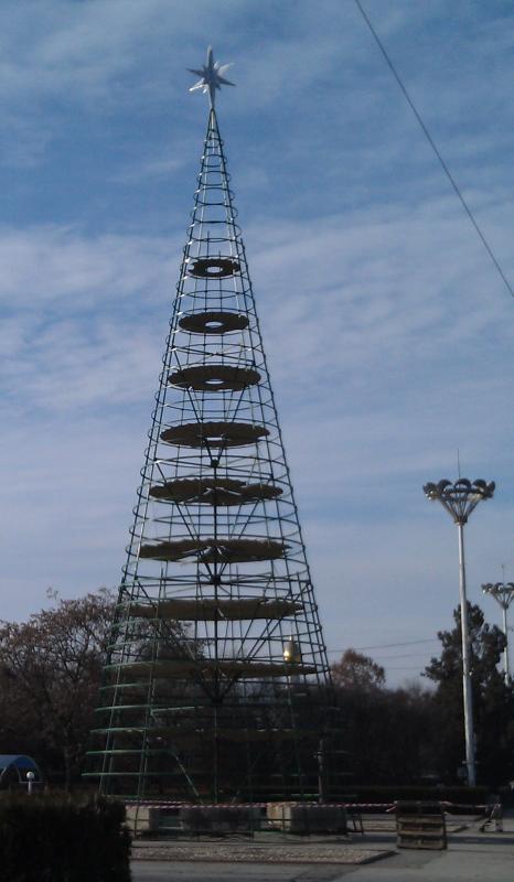 А вот и первая стадия постройки искусственной елки в Тирасполе: