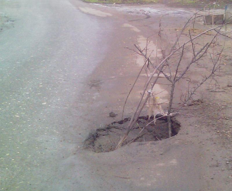 Сегодня для интереса сфотографировал то же самое место на дороге, месяц яма была огорожена, присыпана песком, потом авто сбило оградку, там ксатти уже зелень пробивается, мож дерево вырастет, пока отремонтируют дорогу: