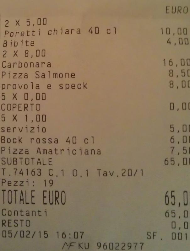 Пиццерии там на каждом шагу. Так же есть траттории - более домашние и неформальные заведения. Зашли в первую пиццерию, вот фото меню: Вложение 15408Вложение 15409Вложение 15410Вложение 15411 Вот чек, если посидеть и плотно наестся пиццей с пивом в итальянской пиццерии: Вложение 15412 А вот пример цен на пиццу в другой пицерии. Вложение 15413 В пиццериях пицца оказалась самой вкусной. Но далеко не во всех римских пиццериях пицца очень вкусная. Нам только в одной она понравилась. П.С. Это я (слева). Вложение 15417Вложение 15418 |
