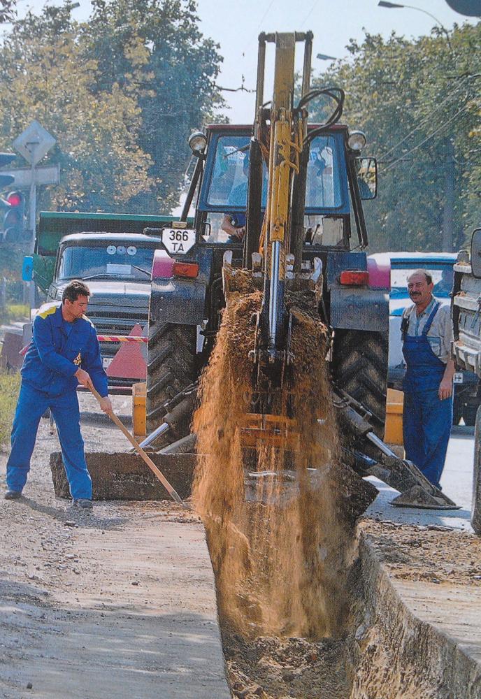 Строительство газопровода в г. Тирасполь. Директор "Тирасполь-газ" наблюдает за работой.