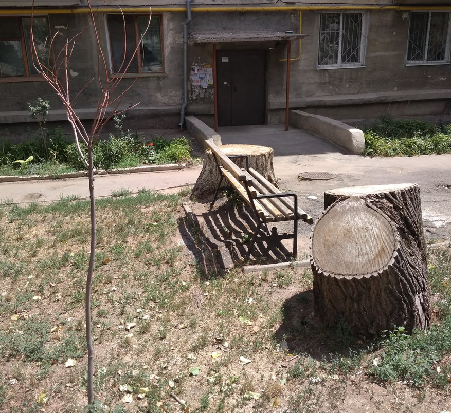 И когда что то сажается - то город должен брать на полив саженцы, соответственно деньги идут в Спецзеленстрой. Но в данном случае у Спецзеленстроя сломалась поливочная машина еще. Вот еще пример по Тирасполю. Спилили дерево, посадили саженец рядом. Полива нет - саженец высох. Вложение 26939 |