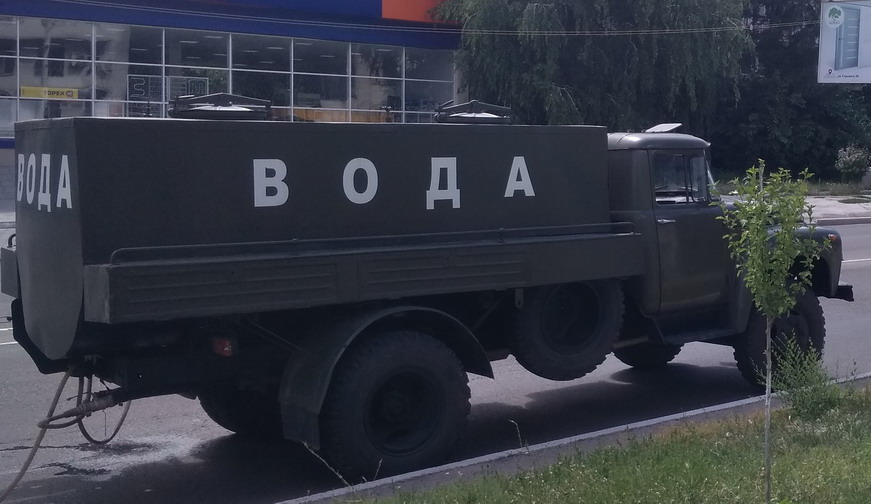 Еще на счет полива саженцев, в тираспольском Спецзеленстрое всего две поливочные машины, зачастую одна в ремонте. Вот они.