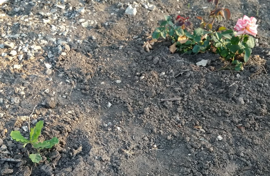 У тираспольского ГАИ под дубами - из желудей, в газоне с розами проросли маленькие дубочки!