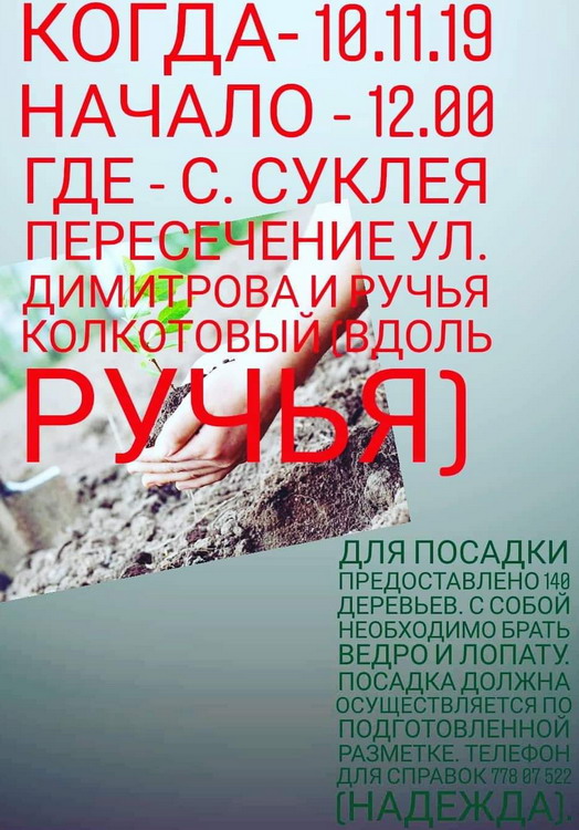 Посадка саженцев ручей Светлый - Суклея.