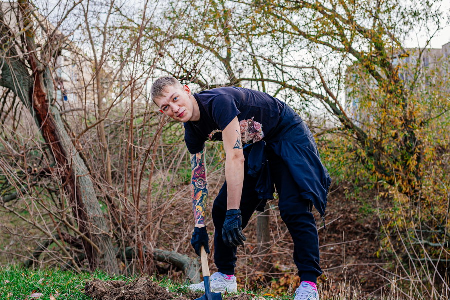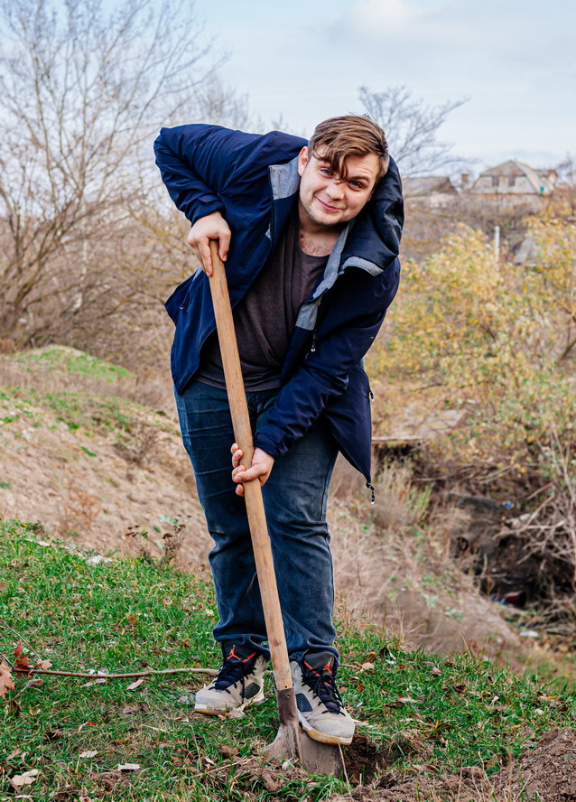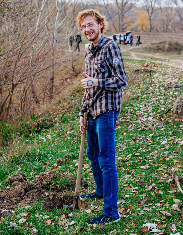 Герой дня для меня. Волонтер Виталий - откликнулся на призыв акции ЭкоПМР по посадке деревьев. Работа нашлась всем!