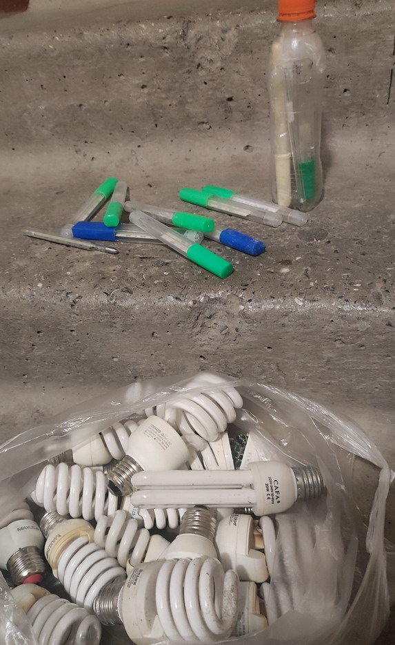Вот я передал журналистке с ТСВ собранные за несколько месяцев градусники и ртутные лампы. А она их сдала. Смотрим репортаж постом выше.