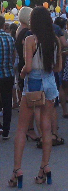 Высокая брюнетка в миниюбке, справа от Гали)