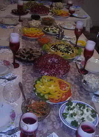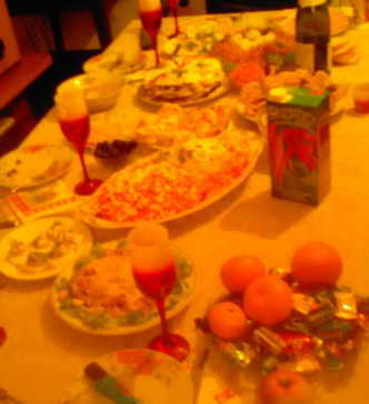 Вот в процессе накрывания до подачи горячих блюд фоткал дома наше застолье.