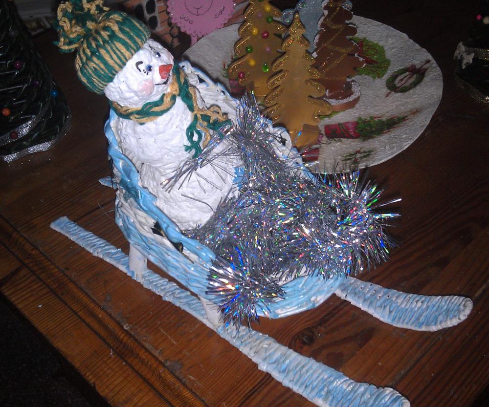 Детские поделки на Новый Год в тираспольском доме ремесел. Снеговики да елки.