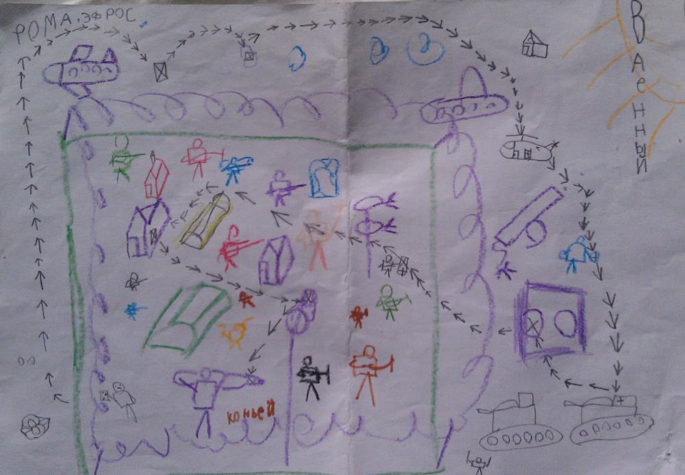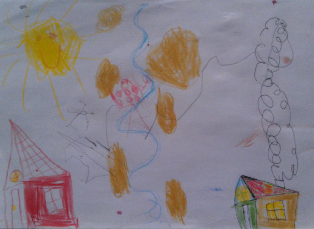 Вот несколько детских рисунков моего сына. Первый рисунок - российская военная база в Тирасполе ))