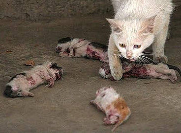 Семья приютила на ночь бездомную кошку, а утром, услышав истощенные крики животного, они спустились вниз и обнаружили измученных до смерти четырех ее малышей.Тела котят были покрыты пулевыми отверстиями и все крови. Головы трех мертвых котят ступились от ударов, а последний малыш был еще жив, но его грудь сокращалась открытая, выставляя сердце. Согласно наблюдению журналиста, пулевые отверстия на телах котят были вызваны металлическим,игрушечным оружием. Считают, что, ночью, кто-то сначала избил котят,чтобы они были неспособны убежать, а потом продолжал над ними издеваться\калечить до смерти. И самое ужасное, что этот выродок специально клал их около кошки-матери. Бедная продолжала облизывать своих деток, надеясь, что вылечит их..’ Нет большего зла, чем мучить тех, кто не может тебе ответить. Горите в аду, ублюдки.. |