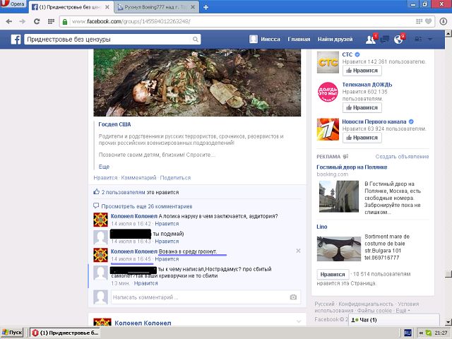 версия про то что мечтали сбить борт № 1,конечно,экстравагантная,но вот,например,что писали на ФБ в группе Приднестровье без цензуры укро пропагандисты