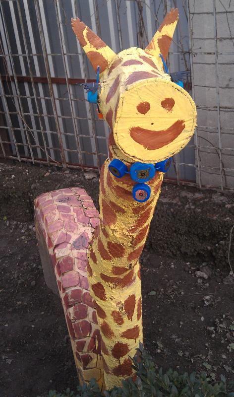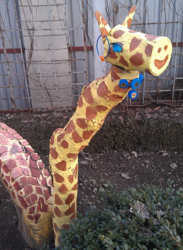 Кстати, вот какие экспонаты прикольные и веселые есть в нашем детском садике (под мостом). Всегда нравились такие поделки.
