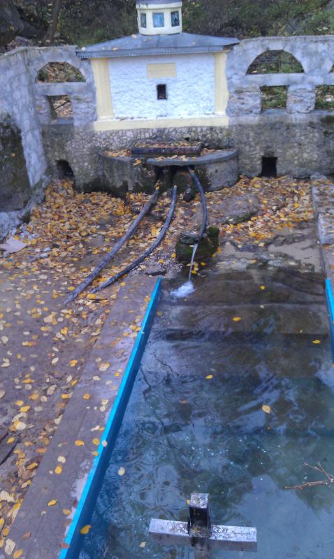 За мужским монастырем, перейдя мостик, находится купальня.