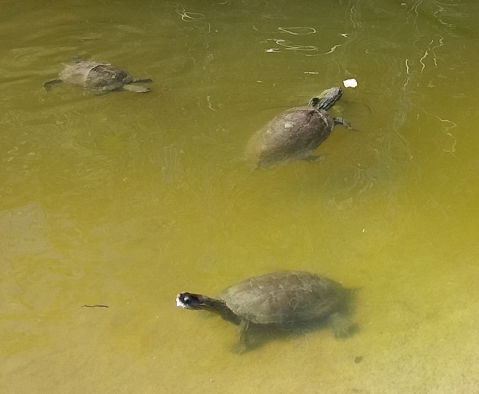Небольшое болотце, полное черепах. Если кинуть им хлеба, или сыра да колбасы, выполжает порядка 10-15 черепашек.